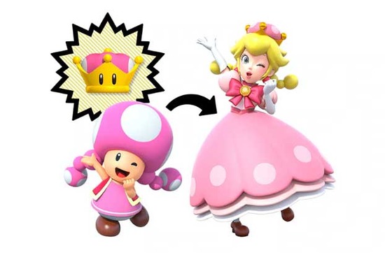登場したキャラクター「キノピーチ」が発端。プレイアブルキャラのキノピコが、新アイテム「スーパークラウン」をとることで、